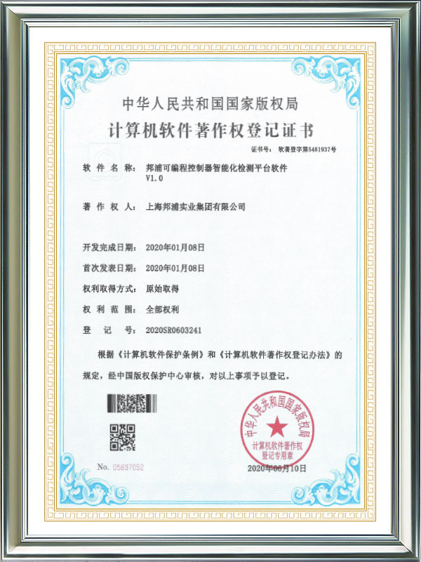 컴퓨터 소프트웨어 작업 등록 인증서 Bangpu Programmable Controller 지능형 감지 플랫폼 소프트웨어