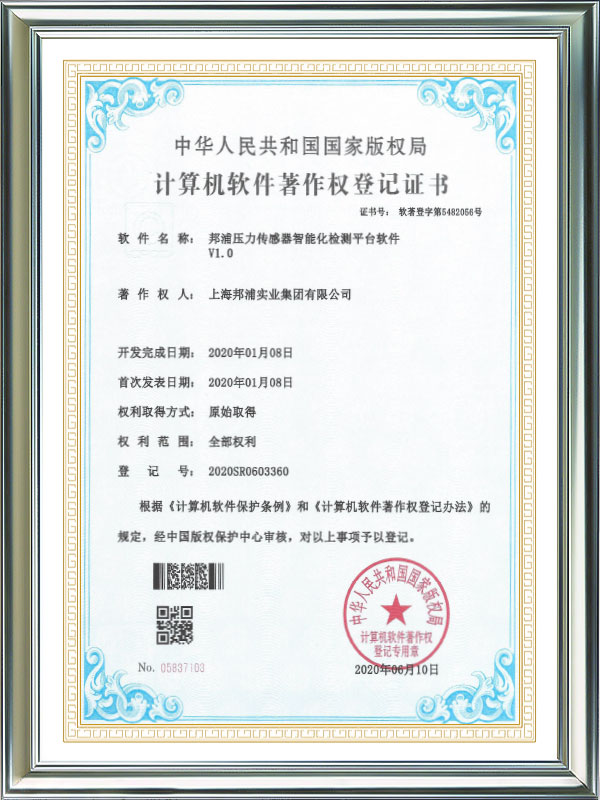 컴퓨터 소프트웨어 작업 등록 인증서 Bangpu 압력 센서 지능형 감지 플랫폼 소프트웨어